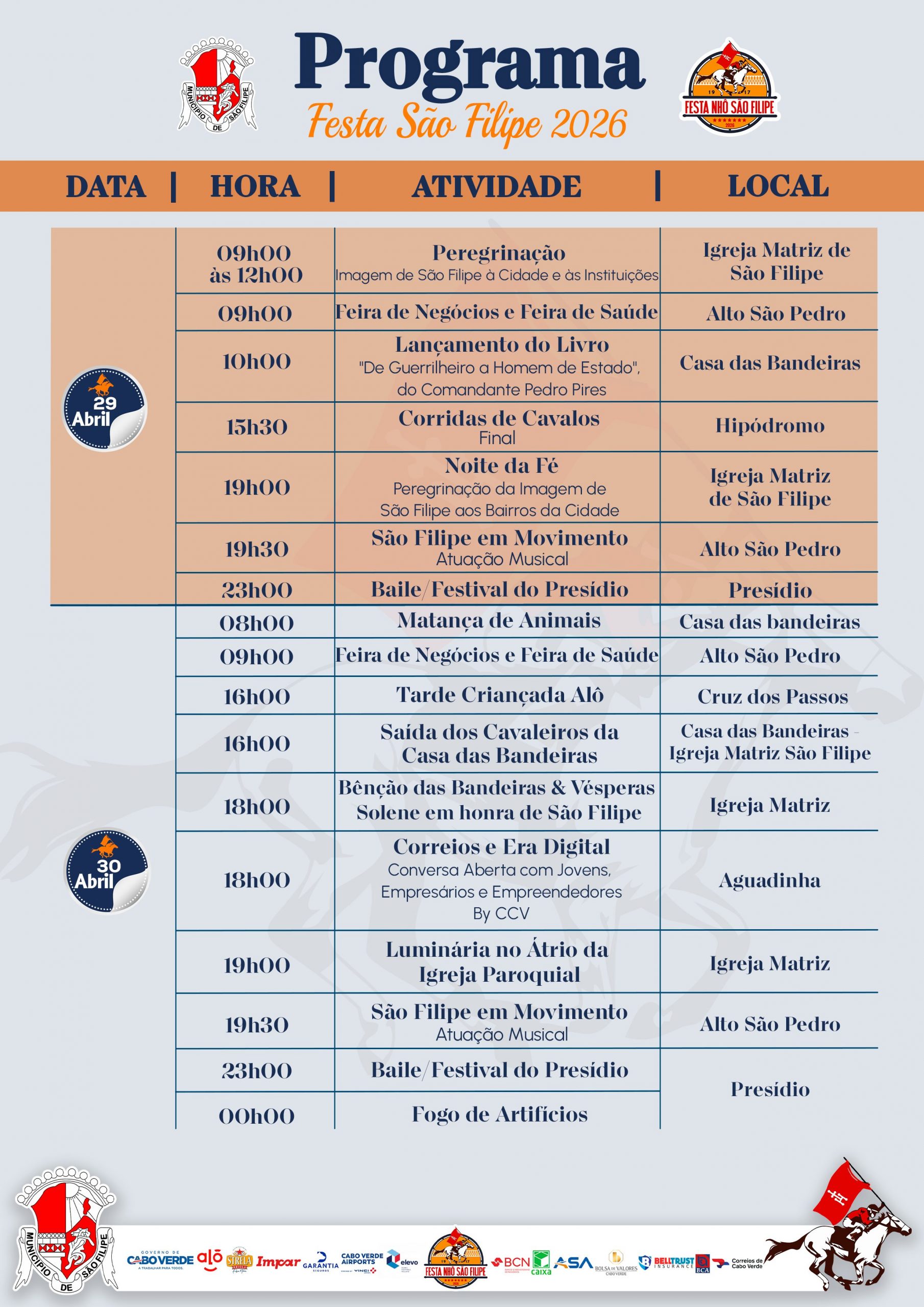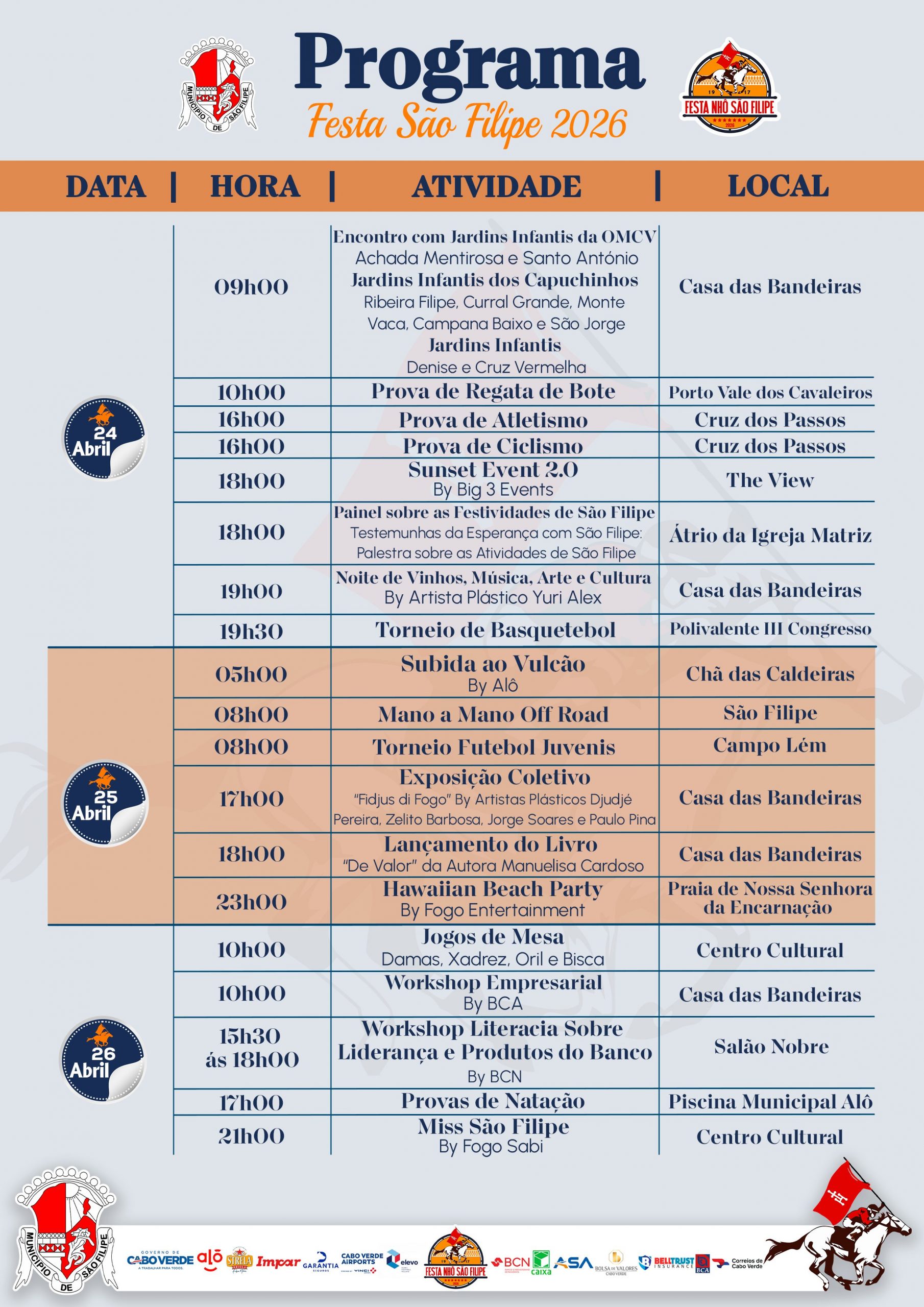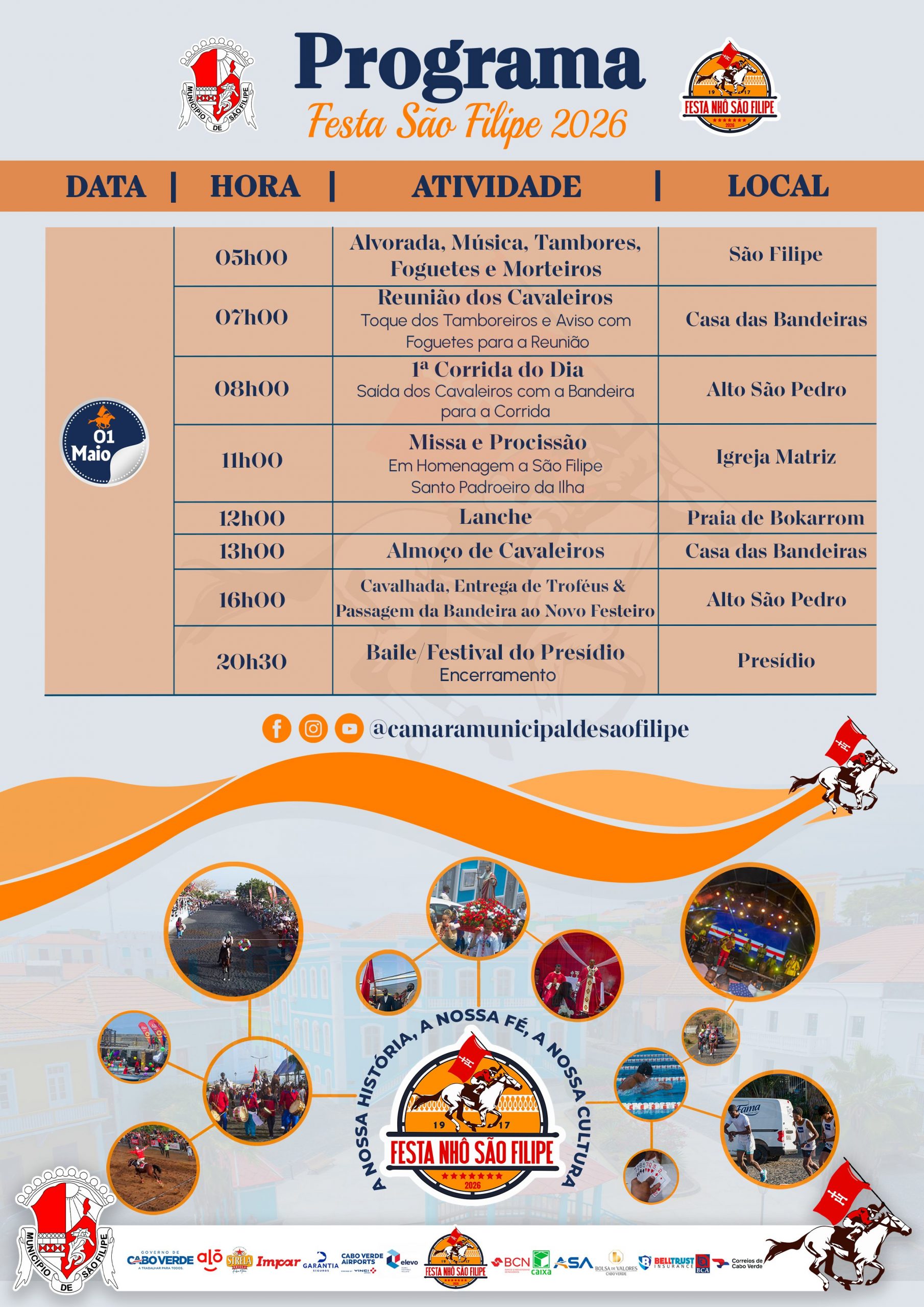 A Festa de São Filipe 2026 chega à sua 109ª edição, afirmando-se como uma das maiores e mais emblemáticas celebrações de Cabo Verde. Um momento único onde tradição, cultura, música e identidade se unem para celebrar o melhor do nosso município e do nosso país.